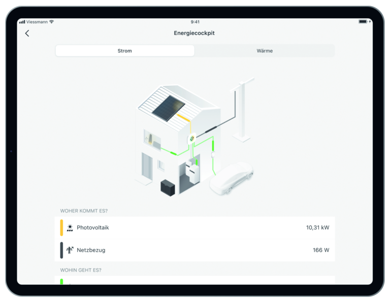 ViCare uygulamasındaki enerji kokpiti sayesinde evinizdeki enerji akışlarını gerçek zamanlı olarak izleyebilir ve analiz edebilirsiniz. Bu araç, kendi kendine yeterlilik ve enerji tüketiminizi optimize etmenizi sağlar.