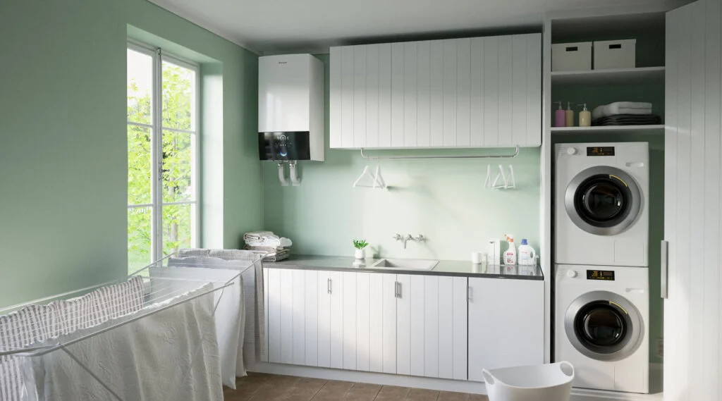 Isı pompalarının entegre boylerli versiyonları, hem ısıtma-soğutma hem de sıcak su ihtiyacınızı tek bir sistemde toplar. Bu benzersiz tasarım, kullanım suyunun harici bir boylerde değil, cihaza entegre boyler sayesinde iç ünitede üretilmesini sağlar.
